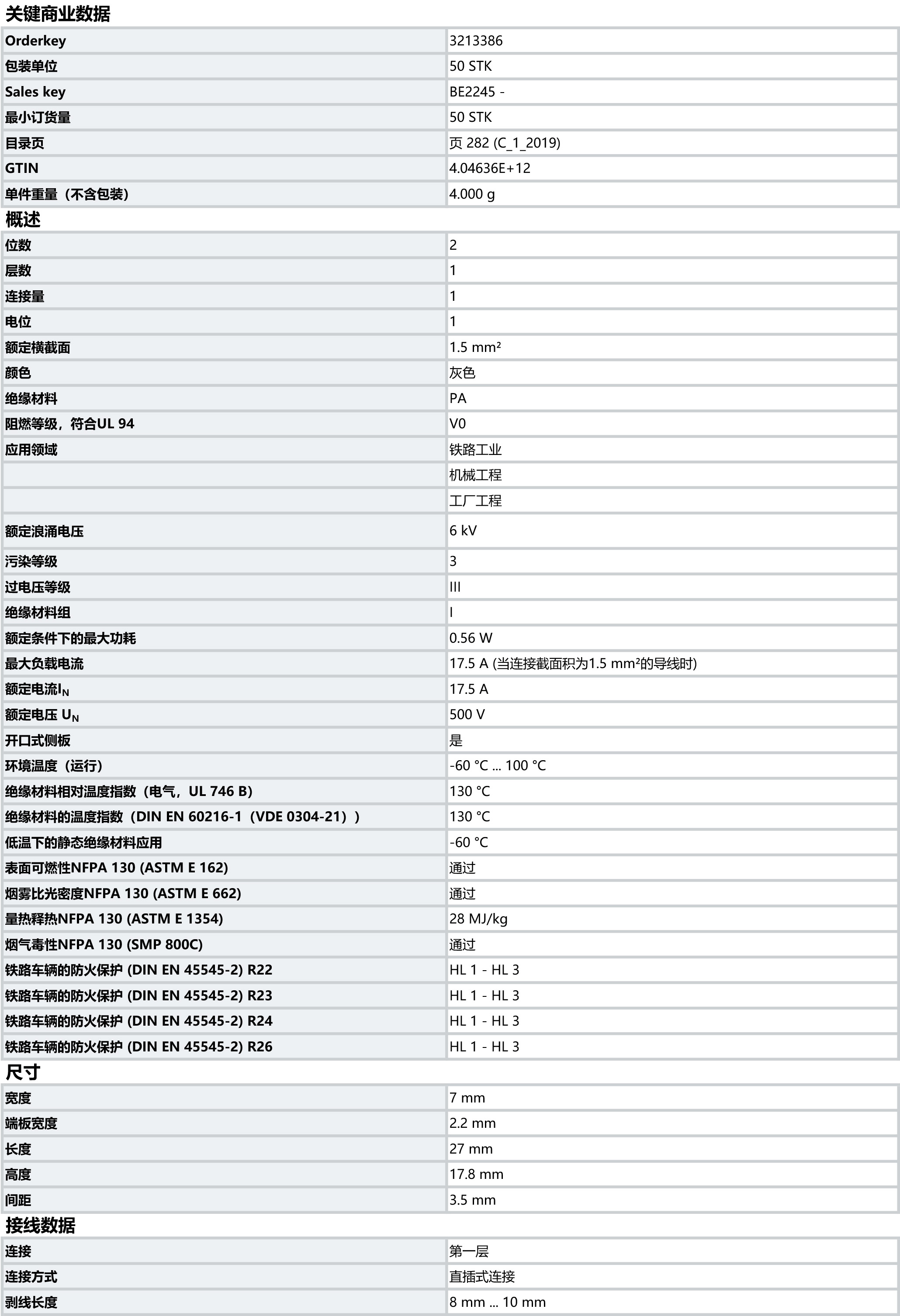 COMBI插座, 標稱工作電壓: 500 V, 標稱工作電流: 17.5 A, 接線方式: 直插式連接, 連接量: 1, 位數: 2, 橫截面: 0.14 mm2 - 1.5 mm2, AWG: 26 - 14, 寬度: 7 mm, 高度: 17.8 mm, 顏色: 灰色